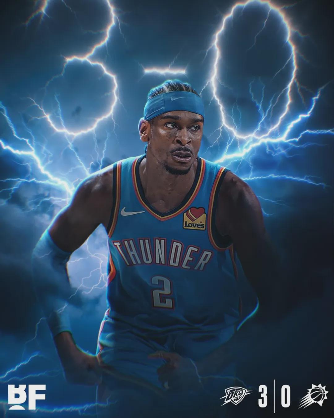 亚历山大接管比赛,此役投篮18中15,三分3中1,罚球12中11,狂轰42分4篮板8助攻1抢断,得分创个人季后赛生涯新高。其中有6个罚球,来自太阳最后的犯规战术。今年季后赛首轮前三场已经全部结束,仅雷霆和湖人取得3-0领先。