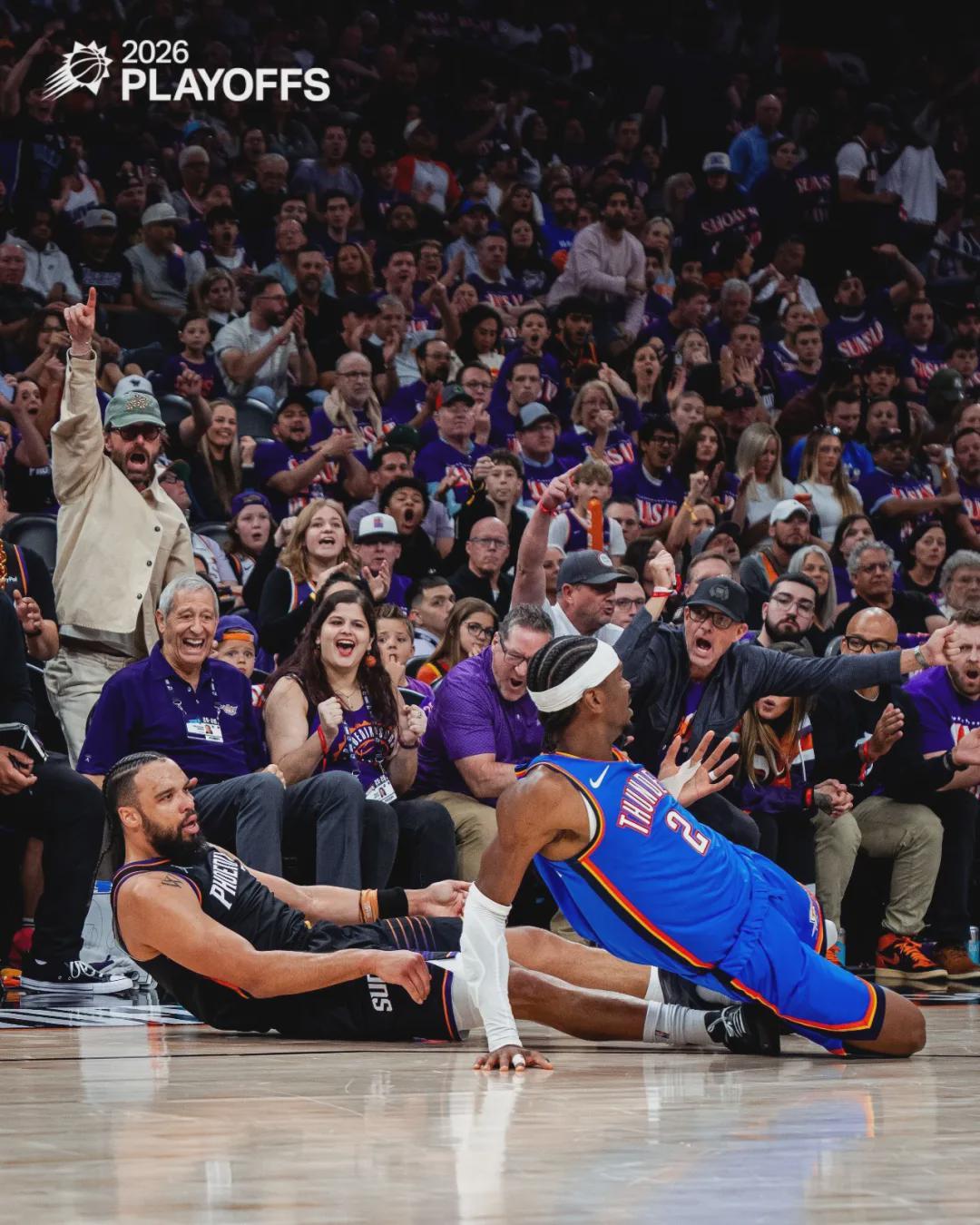 北京时间4月26日,今天凌晨结束的一场NBA季后赛:雷霆客场121-109击败太阳,总比分3-0领先。两队都有伤员休战:雷霆的杰伦-威廉姆斯和以赛亚-乔,太阳的马克-威廉姆斯和古德温。今年季后赛,马威因脚伤一场都没打。