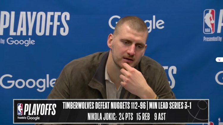 4月26日讯 在今天结束的一场季后赛中,掘金以96-112不敌森林狼。赛后,掘金球星尼科拉·约基奇出席了新闻发布会。以下是完整版采访内容。